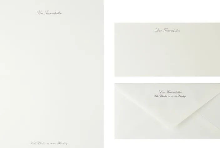 Das besondere Extra: Sie können das Briefpapier und die Briefumschläge in drei unterschiedlichen eleganten Schriftarten personalisieren (max. 38 Zeichen). Lassen Sie Ihren Namen oder den Ihrer Liebsten für ein stilvolles individuelles Geschenk auf das Briefpapier drucken in den Schriftarten: Modern, Schreibschrift oder Classic-Serifen. Nur erhältlich bei der ZEIT.