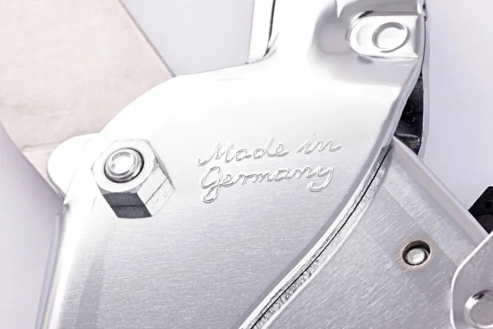 Die Jubiläumsedition »Classic Schere« von Original LÖWE ist eine Amboss-Schere mit gerader Klinge. Der verchromte Stahlkörper sowie die mittige Führung des Messerhebels machen diese Schneidwerkzeuge unvergleichlich robust und sind ein optisches Wiedererkennungsmerkmal.