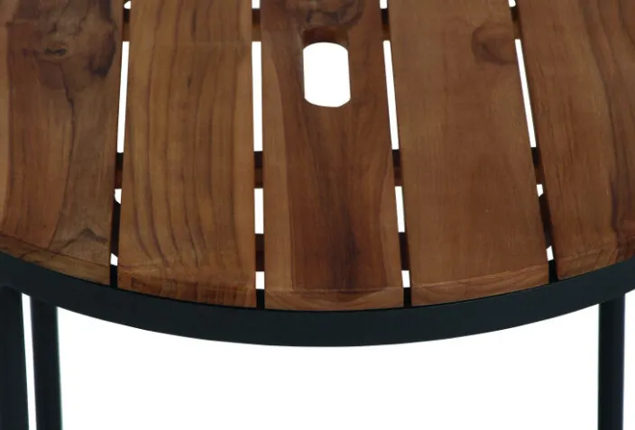 Edles FSC 100% Teakholz FSC auf einem schlanken Aluminiumgestell: Material-Mix vom Feinsten! Ein wunderbares Designelement für Ihren Garten, das Ihnen mit Sicherheit viele Komplimente einbringen wird. Die Baros Beistelltische punkten durch ihr luxuriöses Aussehen und kompakte Größe. Vor allem aber macht der matt-farbende Look des pulverbeschichtenden Aluminiums einen echten Hingucker daraus. Durch seine qualitativ hochwertigen Materialien sind die Tische sehr stabil, langlebig und bestens für Draußen geeignet. Zur Erhaltung seiner wunderschönen Farbe, nutzen Sie bitte ein Pflegemittel für Teak-Holz. So erhalten Sie auch über viele Jahre hinweg den schönen Farbton.