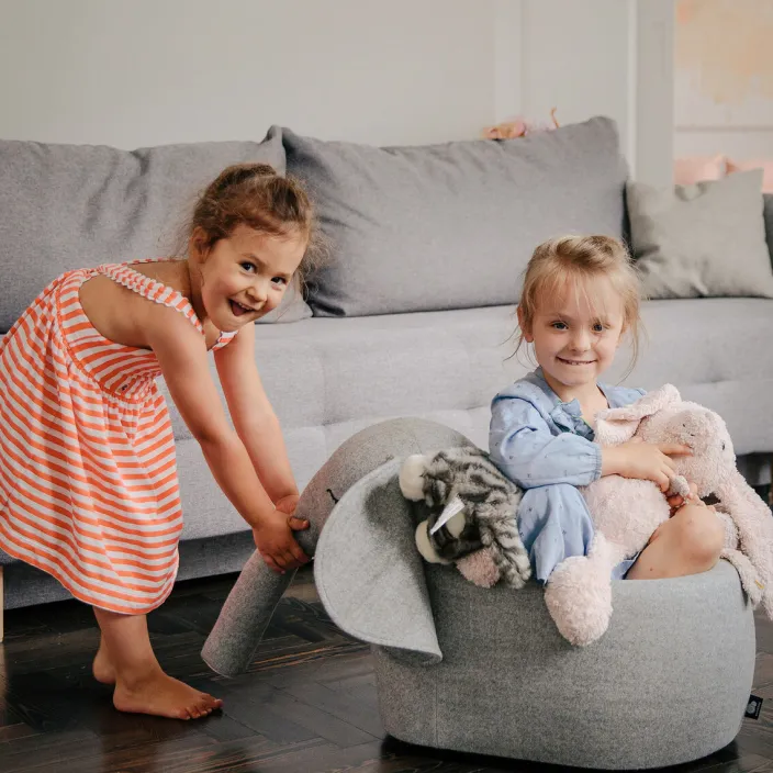 Die Kollektion bringt kreatives Spiel, Bewegung, Spaß und jede Menge schöne Erinnerungen in Ihr Zuhause. Jedes Tier verkörpert eine wichtige Bewegung (Schaukeln, Springen oder Rollen) und lädt zu einem kreativen und offenen Spiel ein. Diese Spielkameraden fördern motorischen Fähigkeiten aber schaffen auch ein positive sensorisches Umfeld, in dem sich Kinder sicher und geborgen fühlen.