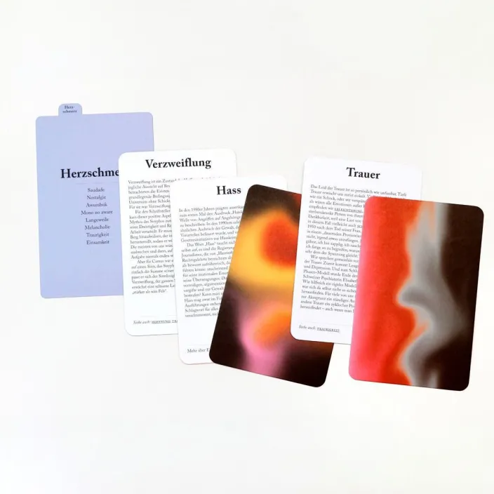 Eine Kulturgeschichte der Emotionen auf 80 KartenGefühle sind der Wegweiser durch Ihr LebenEntdecken Sie Emotionen, von denen Sie nicht einmalwussten, dass Sie sie haben!Tauchen Sie ein in Die Box der Emotionen und finden Sie denperfekten Ausdruck dafür, wie Sie sich fühlen. Jede der 80Karten enthält einen Text über eine Emotion auf der einenund ein faszinierendes Farbmuster, das die jeweilige Emotionvisuell darstellt, auf der anderen Seite. Erfahren Sie mehrüber sich selbst und darüber, wie Ihre Mitmenschen ticken!Die Bandbreite reicht von Wut und Sorge bis zu Empathie undMut. Hinzu kommt eine Vielzahl von Emotionen, die wir zwarals Gefühlszustand kennen, für die unsere Kultur jedoch keineneigenen Begriff entwickelt hat – wie Awumbuk, Fago oderLítost – die Ihnen möglicherweise eine ganz neue Seite IhresSeelenlebens eröffnen.