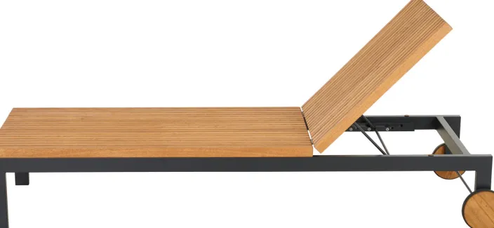 Der Unterbau aus pulverbeschichtetem Aluminium ist wetterfest, rostfrei und gleichzeitig sehr leicht. Für langanhaltende Qualität und eine einfache Handhabung. Das zu 100% FSC®-zertifizierte Robinienholz ist besonders hart, robust, widerstandsfähig und besticht mit seiner schönen Maserung, die der Liege einen ganz eigenen Charakter verleiht.