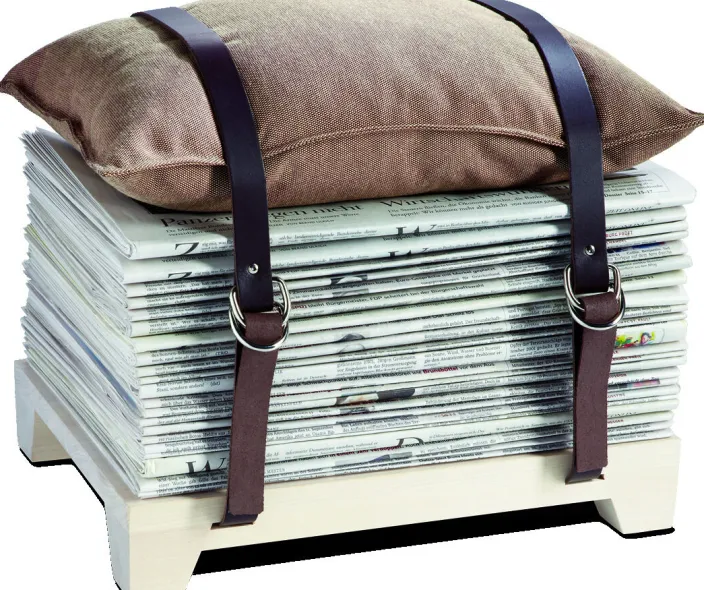 - Lieferumfang: 1 Hockergestell aus gewachster Birke, 2 Lederriemen dunkelbraun und 1 nju-Kissen