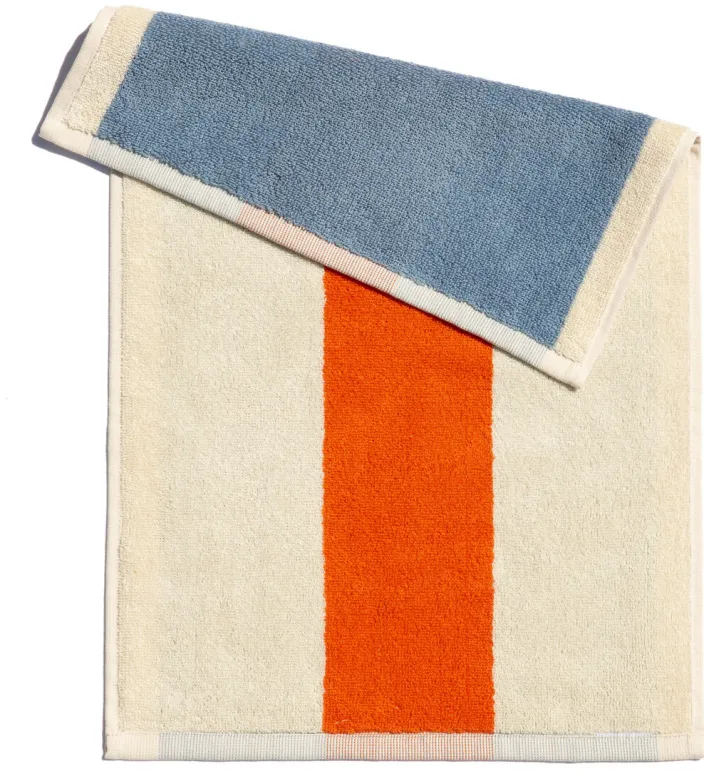 Einzigartig an dieser Kollektion ist, dass Vorder- und Rückseite unterschiedlich sind. Das Handtuch ist 30 x 50 cm groß, aus wunderbar weicher Bio-Baumwolle gefertigt und hat ein Gewicht von 550 Gramm pro Quadratmeter. Dank der kurzen Schlingen fühlt sich das Handtuch nicht nur kompakt an, sondern ist auch außergewöhnlich weich. Die Kollektion von Suite702 ist das Ergebnis einer Zusammenarbeit mit Karel Martens und basiert auf dem Kunstprojekt „Farben am Strand“. Erhältlich in verschiedenen Farbkombinationen.