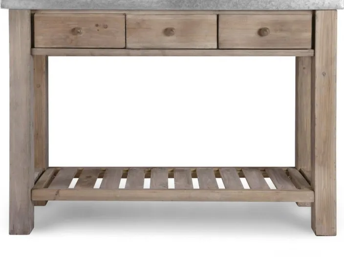 Die charmant rustikale Erscheinung macht diesen großen Holzarbeitstisch mit viel Stauraum zum stilvollen Helfer beim Pflanzen und Umtopfen. Ausgestattet mit 3 Schubladen und gefertigt aus handselektierter, naturbelassener Fichte aus der EU mit charakteristischer Maserung, hält er dank der strapazierfähigen Zink-Oberfläche jeder Gärtner-Arbeit langlebig stand.