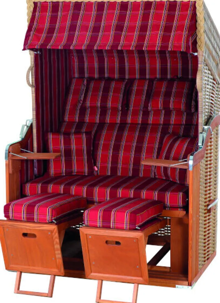 Der Oberkorb ist variable verstellbar und durch eine extra starke Polsterung sehr gemütlich. Das Holz ist imprägniert und der Kunststoff wurde rundum von Hand geflochten. Dabei werden nur Stoffe verwendet, welche eine extrem hohe Qualität haben, sodass ihnen auch die UV-Strahlung kaum etwas anhaben kann. Der Oberkorb wurde aus einem Stück geflochten, dadurch gewinnt er an zusätzlicher Stabilität. Genießen Sie Ihren Strandkorb in Ihrer grünen Oase! Jetzt heißt es nur noch: Füße hoch und Entspannen, denn der Gartenstrandkorb wird bereits fertig montiert zu ihnen geliefert!