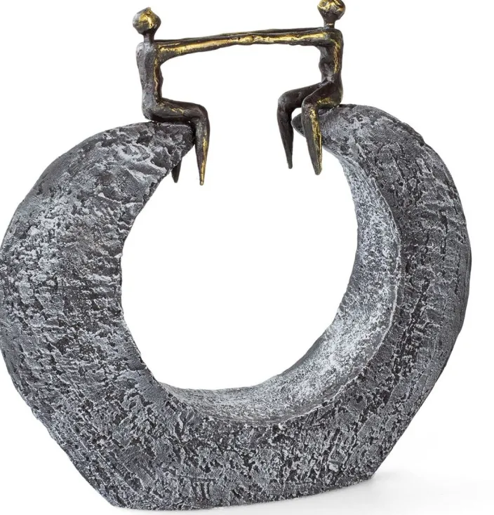 Die Figuren sind durch einen Abgrund getrennt, dennoch halten sie sich an den Händen und geben sich ein Gefühl von Sicherheit. So ist diese Skultpur ein Symbol für eine Freundschaft, die auch über weite Distanzen Halt gibt und durch dunkle Zeiten trägt. Augenblicks, der Situation. Die Skulpturen fungieren als kleine Motivatoren, die sich ideal für den Arbeitsplatz oder den Schreibtisch zu Hause eignen.