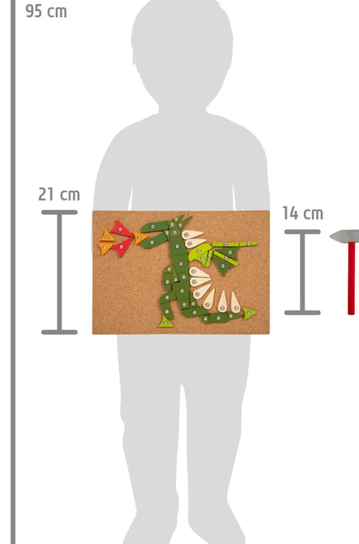 - Inhalt: 100 Ziernägel, 126 Holzelemente, Korkbrett und Holzhammer, inkl. sechs Bildvorlagen und Aufbewahrungsbox