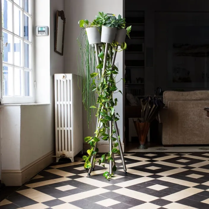 Der Pflanzenständer von urbanature ist ein absoluter Blickfang für Ihren Garten und Ihre Wohnung. Hergestellt in Handarbeit aus Deutschland präsentiert er Pflanzen im Innen- und Außenbereich auf Augenhöhe. Durch die enge Anordnung der fünf Übertöpfe, dem Selbstbewässerungssystem und die besondere Eigenschaft des Betonmaterials entsteht ein einzigartiges Mikroklima, wodurch vor allem die Verdunstung reduziert wird. Besonders gut eignen sich die Übertöpfe für Hängepflanzen. Die Antirutschgummis an den Füßen sorgen zusätzlich für einen sicheren Stand im Garten und auf dem Balkon. Erzeugen Sie in Ihrem Zuhause und im Garten eine stimmungsvolle Atmosphäre.