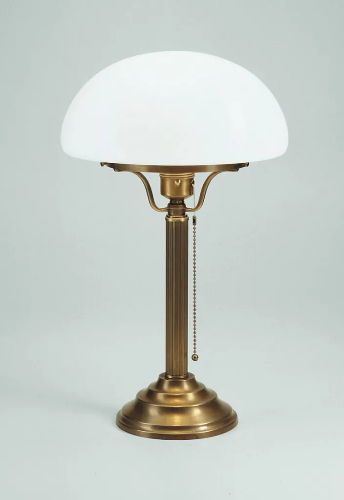 Dieser Designklassiker aus Berliner Messing und einem Schirm aus mundgeblasenen Opalglas ist mit seinen klaren Formen ein zeitlos schöner Mittelpunkt eines stimmungsvollen Ambientes.