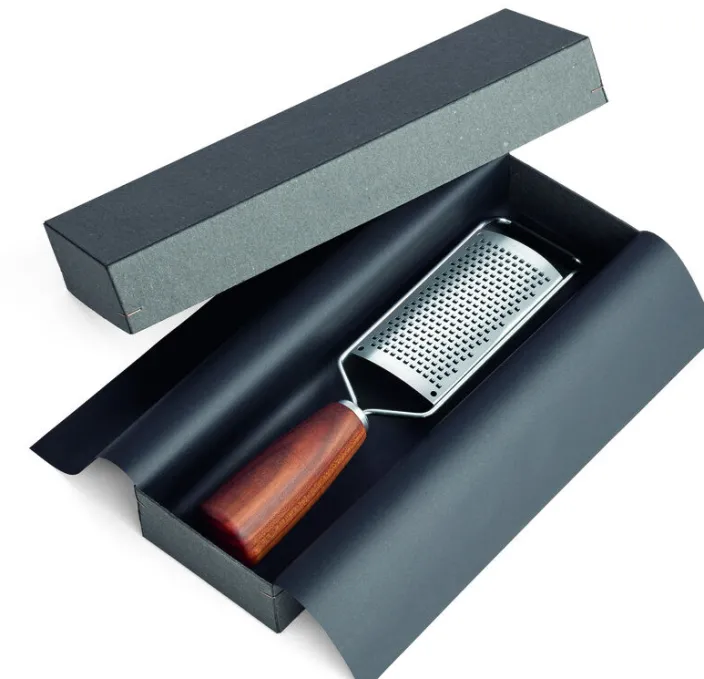 Hochwertige Käsereibe »Soul« hergestellt im besonderen Photoetching-Verfahren für dauerhaft scharfe Reibflächen. Für Soul verwendet triangle Hölzer von regionalen Obstwiesen und Wäldern und unterstützt damit eine nachhaltige Holzwirtschaft und kurze Transportwege. Die Griffe werden im Sauerland gedrechselt, anschließend in Solingen fein bearbeitet und mit Funktionsteilen aus Edelstahl konfektioniert. Soul Produkte werden in einem stilvollen und wiederverwendbaren Geschenkkarton geliefert.