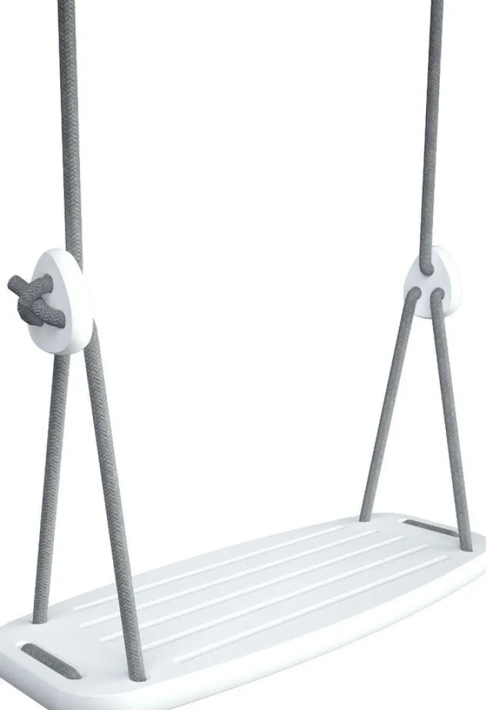 - Lieferumfang: Schaukelsitz (geöltes Eichenholz oder weiß lackiertes Birkenholz), 2 schwarze oder graue Seile (reißfestes Kunststoffgewebe), 4 Verbindungsstücke, 2 Schaukelgelenke, Montageanleitung