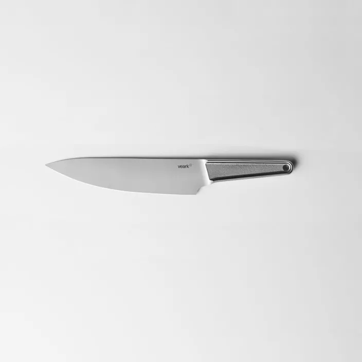 Dieses Messer, designt in Dänemärk und hergestellt in Deutschland, erinnert an ein Werkzeug welches sowohl optisch als auch in der Funktionalität überzeugt. Der offene Griff, ein vom Schraubenschlüssel inspiriertes Design, lädt dazu ein, den Daumen auf die Klinge zu schieben und sie direkt am Gleichgewichtspunkt zu greifen. Dies sorgt für zusätzliche Stabilität und festen Halt beim Kochen. Durch das Gesenkschmieden erhält jedes Messer ein individuelles Muster auf dem Griff. Ein schönes Detail, das jedes Messer zu einem Unikat macht und gleichzeitig an die ehrliche Handwerkskunst erinnert, die hinter seiner Herstellung steckt. Das Messer ist vollsymmetrisch und zu 100% für Links- und Rechtshänder geeignet.