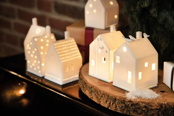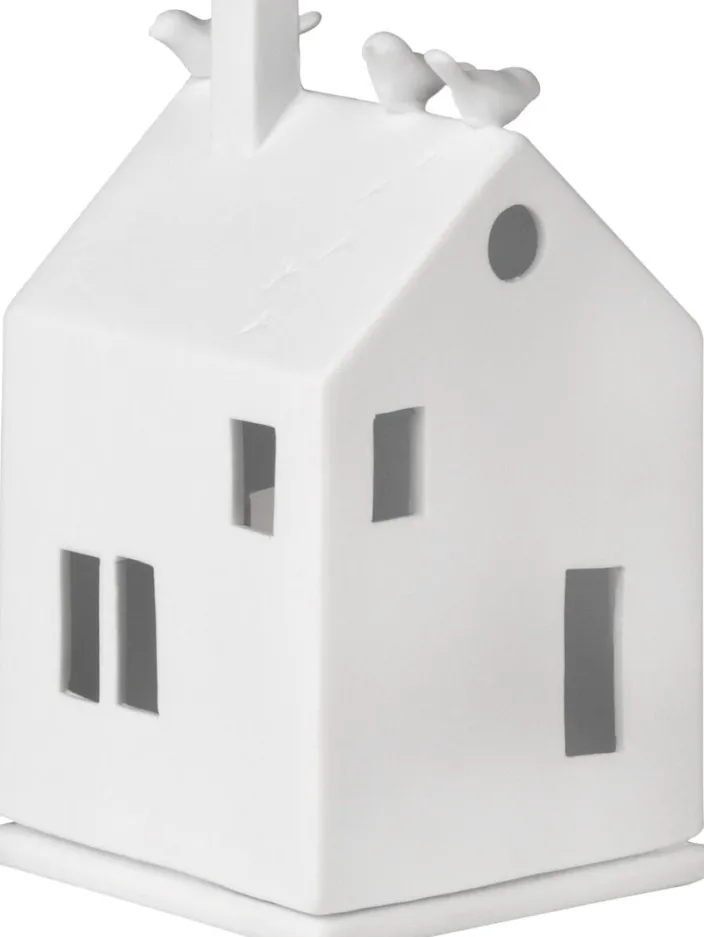 Kein Wunder, dass Zugvögel hier Rast machen. Dieses Haus aus unglasiertem Porzellan lässt warmes Licht durch die Fenster fallen und bietet Nachtschwärmern ein Zuhause.