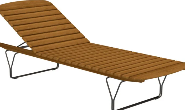 Die »Molo« Sonnenliege besteht aus Bambuslamellen mit einer dekorativen Beinkonstruktion aus pulverbeschichtetem schwarzem Metall. Die Oberfläche und die weich abgerundeten Bambuslamellen in Kombination mit der Metallkonstruktion erinnern an einen Pier und die entspannte Atmosphäre am Meer. Die Rückenlehne der Gartenliege »Molo« ist verstellbar und bietet fünf verschiedene Positionen, sodass Sie entweder liegen oder sitzen können.