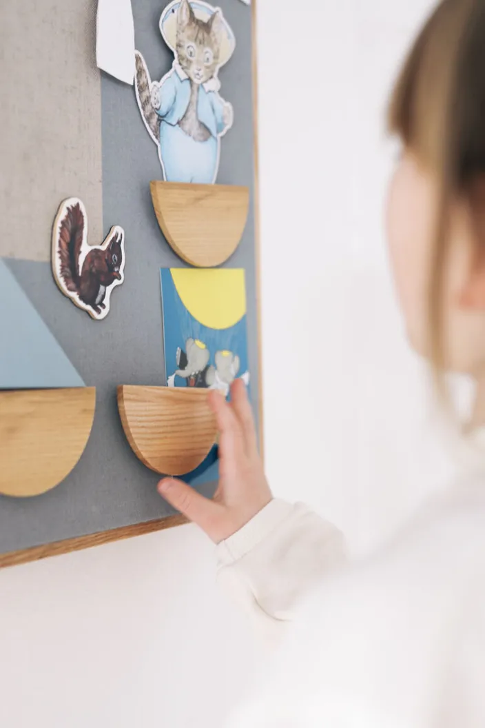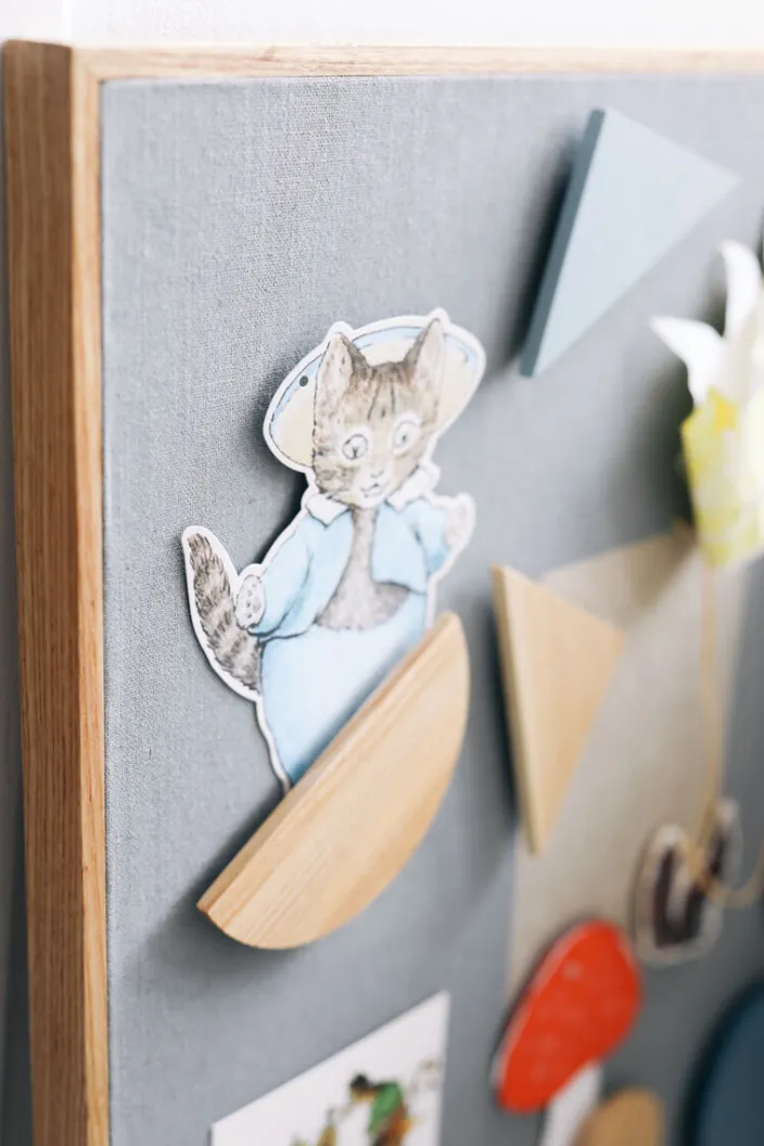 Die ästhetischen Magnete in wunderschönen Farben laden Ihr Kind nicht nur dazu ein, etwas über verschiedene Formen wie Dreiecke, Quadrate und Kreise zu lernen: An einem Magnetboard sind sie außerdem extrem praktisch und hübsch noch dazu. Mit diesen Magneten kann Ihr Kind seine kleinen Kunstwerke, den Stundenplan und besondere Fotos ordentlich aufhängen und bestaunen. Erhältlich in den Farben Blau und Sand.