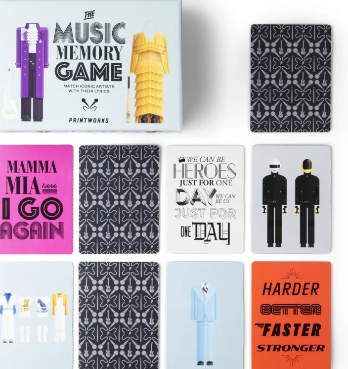 Dieses Memo-Spiel stellt Ihr Musikwissen auf die ultimative Probe. Ihre Herausforderung? Identifizieren Sie ikonische Künstler allein anhand ihrer Kostüme und verknüpfen Sie sie mit den Texten ihrer bekanntesten Lieder. Und wenn Sie nach einem Sieg feststellen, dass Sie mit Ihrer besten „Duschen“-Stimme eine triumphale Melodie singen, ist das alles ein Riesenspaß!