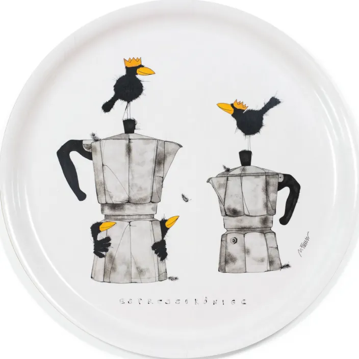 Das dekorative Holztablett »Espressokönige« nach Michael Ferner bringt mit seinem charmanten Design einen Hauch von Kunst in Ihren Alltag. Gefertigt aus hochwertigem Birkenholz, ist dieses Tablett mit einem Durchmesser von 35 cm nicht nur praktisch, sondern auch ein echter Blickfang. Die humorvolle Darstellung der »Espressokönige« verleiht dem Tablett eine einzigartige Note und macht es ideal für den stilvollen Serviermoment. Perfekt für Kaffee-Liebhaber und Kunstfreunde gleichermaßen!