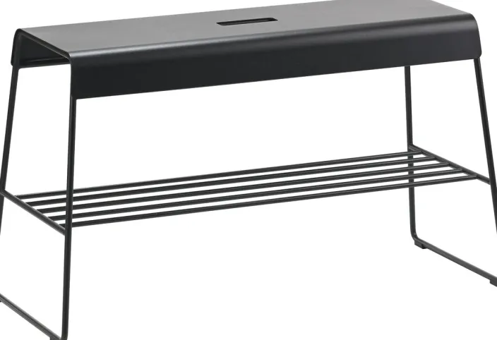 Die A-Bench aus pulverlackiertem Stahl ist unter der Sitzfläche mit einer praktischen Ablage ausgestattet und eignet sich daher überall dort, wo Stauraum benötigt wird. Im Flur für Schuhe, Mützen oder Handschuhe und auf der Terrasse für Kerzen oder Laternen. Der Stil ist minimalistisch, die Möglichkeiten sind vielfältig. Nehmen Sie Platz und genießen Sie ein durchdachtes Design – draußen oder drinnen!