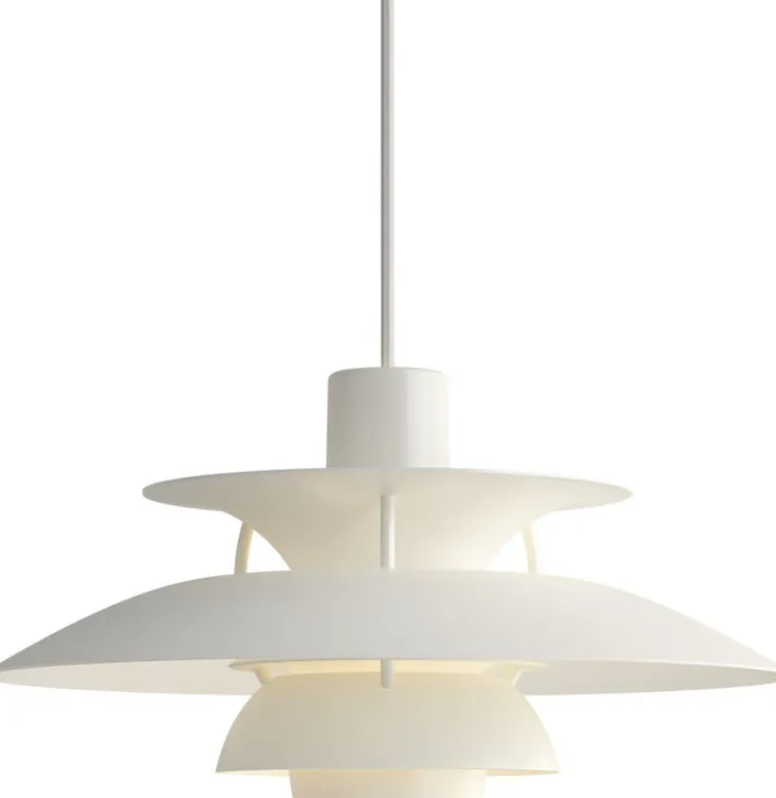 Die »PH 5 Mini« von Louis Poulsen ist die kleinere Variante der weltberühmten Pendelleuchte des Pioniers des Lichtdesigns: 1958 entwarf Poul Henningsen die »PH 5«. Sie ist eine Hommage an den 1958 designten Leuchtenklassiker und noch Heute das meistverkaufte Werk des dänischen Unternehmens Louis Poulsen. Die monochrome Farbgebung lenkt den Blick auf den Formverlauf und verleiht der Leuchte einen grafischen, zeitgenössischen Look. Die Leuchte strahlt vollkommen blendfreies Licht ab. In ihrem Aufbau folgt sie dem Prinzip eines reflektierenden Dreischirmsystems, das den Großteil des Lichts nachunten abstrahlt. Die Leuchte strahlt das Licht sowohl nach unten als auch zur Seite ab und erhellt sich dadurch selbst.