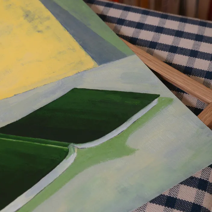 Ein häufig wiederkehrendes Thema in Hannas Werken ist die organische Beschaffenheit von Stoffen und Haut. Sie arbeitet vorwiegend mit Gouache auf roher Leinwand, experimentiert jedoch auch mit innovativen Techniken wie dem Tuften sowie mit natürlichen Materialien wie Wolle, Baumwolle und Leinen. „Ich bin ein absoluter Material-Fan und fasziniert davon, wie Stoffe fallen und sich bewegen“, sagt sie. Ihre Inspiration schöpft sie unter anderem aus der skandinavischen Textilkunst der 1960er Jahre und deren Verbindung von Ästhetik, Funktionalität und minimalistischen Designs.