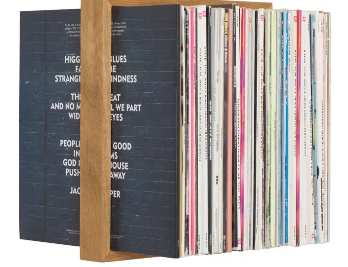 Das Schallplatten-Regal »b-platte« bietet ausreichend Platz für über 50 Schallplatten Ihrer Wahl und setzt sie wirkungsvoll in Szene. Hier schweben sie gut sortiert und immer griffbereit. Der massive Holzrahmen scheint mit den Schallplatten zu schweben, doch in Wirklichkeit halten die eingelassenen Edelstahlwinkel, die zwischen den Plattenhüllen verschwinden, die Konstruktion an der Wand. Zeitlos, individuell und in Deutschland gefertigt.