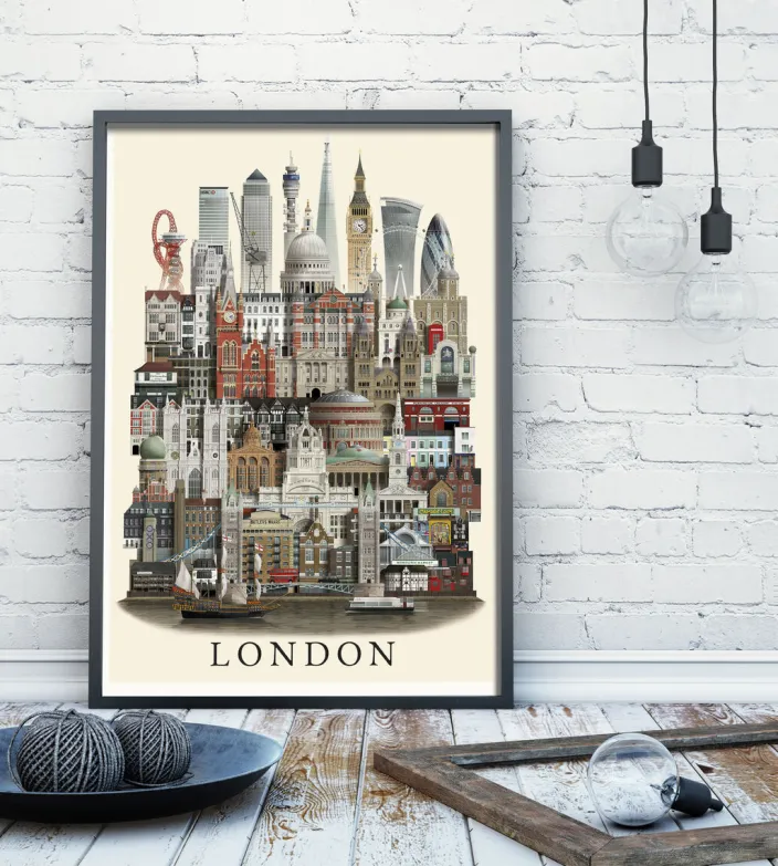 Das Poster »London« von Martin Schwartz vermittelt Ihnen die Atmosphäre der englischen Hauptstadt. Machen Sie einen Spaziergang durch die Straßen Londons und Sie können nicht anders, als sich von der Atmosphäre verzaubern zu lassen. Imposante Gebäude aus der Kolonialzeit stehen neben glitzernden Wolkenkratzern. Ein verzweigtes Netz von U-Bahn-Linien, ständig belebte Straßen und die sich windende Route der Themse durch die Stadt wirken wie Adern in einem riesigen urbanen Organismus, der niemals schläft. Vielleicht versucht der Orbit Tower genau das zu symbolisieren, wenn seine roten und verdrehten Stahlkonstruktionen in der Nähe des Olympiastadions von 2012 in den Himmel ragen. Dieses Poster zeigt die Essenz Londons und bietet Ihnen alles von viktorianischer und georgianischer Architektur bis hin zu den modernen Wahrzeichen, die die Skyline der Stadt ausmachen.