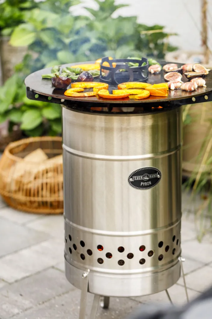 Die »Pyron« Plate von Feuerhand ist die perfekte Ergänzung zur »Pyron« Feuertonne. Sie bietet Ihnen unvergessliche Genussmomente beim Grillerlebnis im Plancha Style.