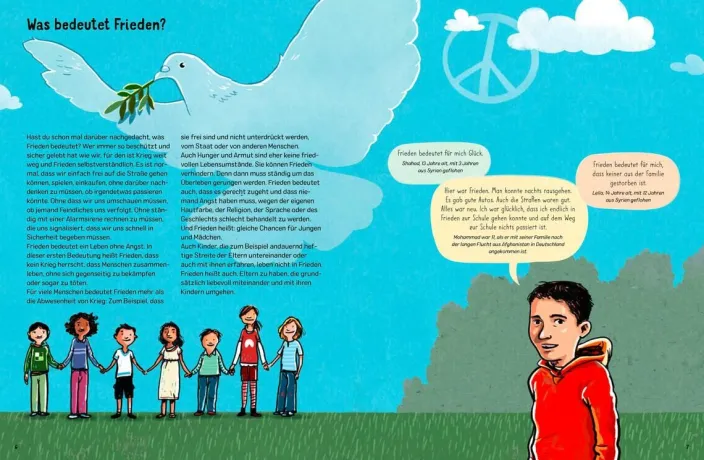 Was bedeutet Frieden? Wer immer so beschützt und sicher gelebt hat wie wir, für den ist Krieg fern und Frieden selbstverständlich. Doch in unserer Welt gibt es viele Erdregionen, in denen Krieg herrscht, auch mitten in Europa. Kinder haben Fragen und machen sich Sorgen, sie wollen wissen, was in der Welt passiert und wie und in welchem Umfang es uns betrifft.