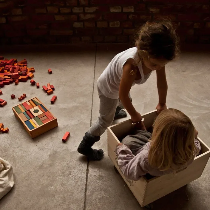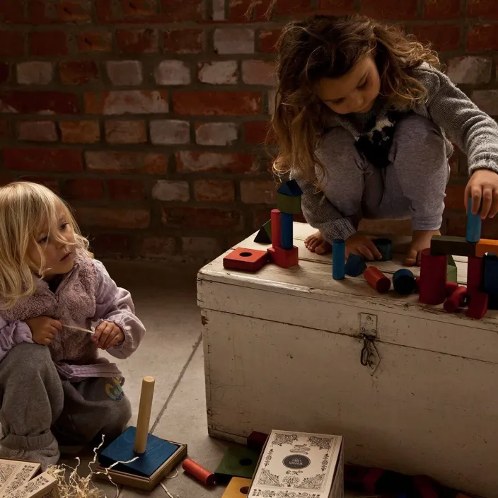 - Inhalt: 63 farbigen Bio-Bauklötze, Holzkiste aus Massivholz, schöne Geschenkschachtel aus Pappe