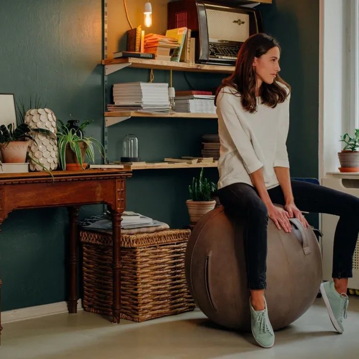 Gymnastikbälle neu interpretiert: Die edlen Sitzbälle von »Vluv« werden mit hochwertigen Stoffen in verschiedenen Farben und Ausführungen versehen. Damit ähneln sie eher modernen Design-Sitzmöbeln als Sportgeräten. Der erste aufblasbare Sitzball aus robustem Möbelstoff steht für gesundes und aufrechtes Sitzen und fügt sich dezent bei Ihnen zu Hause in die Wohn- oder im Büro in die Arbeitswelt ein. Mit seinem praktischen Griff kann der »Vluv« problemlos und ohne großen Aufwand von einem in den anderen Raum getragen werden. Der patentierte Bodenring verhindert zudem ein zu leichtes Wegrollen.