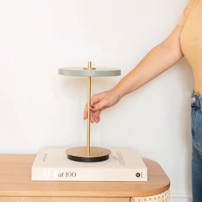 Asteria Move hat vier Lichtintensitätsstufen, die durch Drücken des Knopfes am Lampenfuß eingestellt werden können. Die Batterie der Asteria Move™ hat eine Lebensdauer von bis zu 35 Stunden. Sie kann ganz einfach aufgeladen werden, indem man sie auf eine Qi-Ladestation stellt. Erhältlich in 3 verschiedenen Farben im ZEIT Shop.