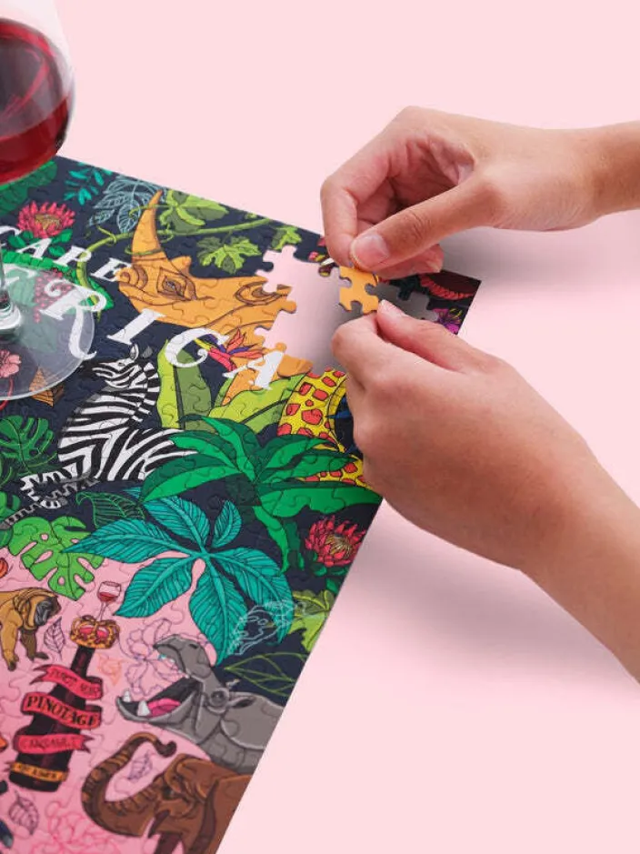 Tauchen Sie ein in ein lebendiges Fest der südafrikanischen Weine mit unserem kunstvoll illustrierten Puzzle. Vom Küstencharme der Walker Bay bis zum bergigen Terrain von Stellenbosch fängt dieses Puzzle die Essenz des Westkaps ein, wo sich die wichtigsten Weinanbaugebiete des Landes konzentrieren.