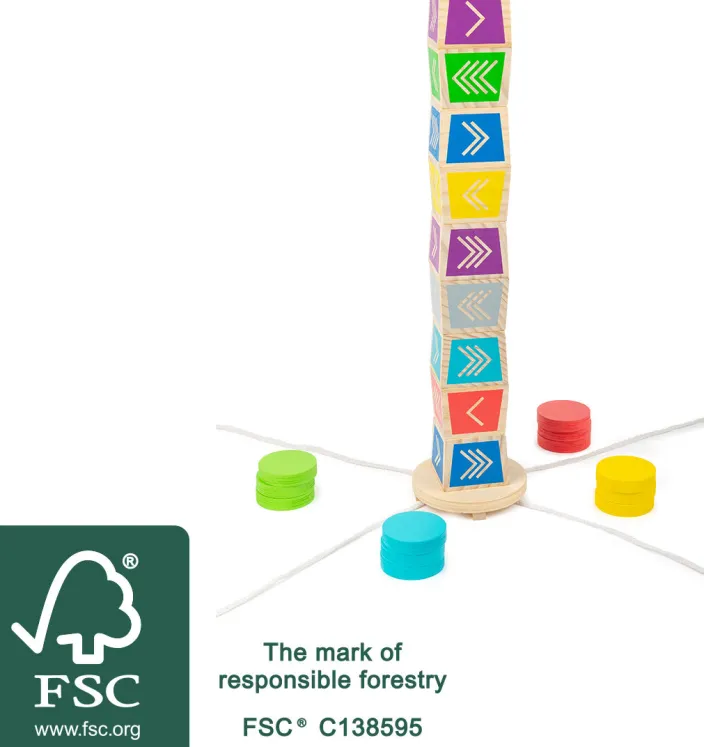 Stapel- und Wurfgeschick gefragt! Ziel des Kubb-Spiels ist es mit dem passenden Wurfscheiben den obersten Holzklotz abzuwerfen. Somit schult dieses farbenfrohe Outdoorspiel zielgenaues Werfen und räumliche Wahrnehmung.