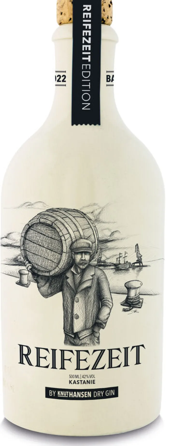 Dieses einzigartige Destillat des KNUT HANSEN DRY GIN reifte 10 Monate im Kastanienfass, dessen hartes Holz als besonders langlebig gilt und dem Gin sein rundes Kastanienaroma verleiht. Den Auftakt der erfolgreichen Kooperation zwischen ZEIT x KNUT HANSEN machte 2021 die »ZEITREISE« Sonderedition, die eigens zum 75-jährigen Jubiläum der Wochenzeitung DIE ZEIT produziert wurde. Die neue gemeinsame Kreation »REIFEZEIT« ist die perfekte Fortführung dieser besonderen Zusammenarbeit. Die im Kastanienfass gelagerte Jubiläumsedition zum 20 jährigen Bestehen des ZEIT Shops ist das Ergebnis tiefer Detailversessenheit und Handwerkskunst der Hamburger Manufaktur. Wie bei allen KNUT HANSEN DRY GINS werden auch für die »REIFEZEIT« ausschließlich regionale Botanicals verwendet. Wenn große Handwerkskunst auf einen ausgeprägten Blick für Details trifft, entsteht ein handcrafted Gin der Spitzenklasse. Streng limitiert auf 2002 Exemplare. Angelehnt an das Gründungsjahr des ZEIT Shops 2002.