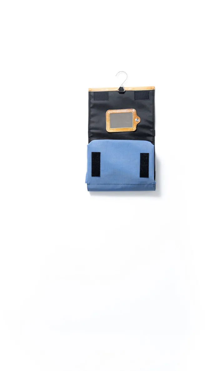 Wer viel unterwegs ist und auswärts nächtigt, sollte nicht nur auf nachhaltige Pfegeprodukte setzen, sondern sich auch für ein Behältnis mit Upcycling-Anteil und Mythos Turnstunde entscheiden. Hiermit macht ihr in jeder Sammelumkleide auf Euch aufmerksam – rollbare bzw. einklappbare Kulturtasche aus gebrauchtem Sportgeräte-Leder und recycelter Turnmatte mit Front aus LKW-Plane. Das Innenfach ist mit schwarzem Nylon gefüttert und weist mehrere kleine Fächer auf. Diese KulturRolle L hat gegenüber der M noch ein extra „Abteil“ = ein großes Staufach mit Zip. Zusätzlich hat die »KulturRolle« einen Spiegel (hochglanzpolierter Edelstahl) und einen Haken zum Aufhängen.