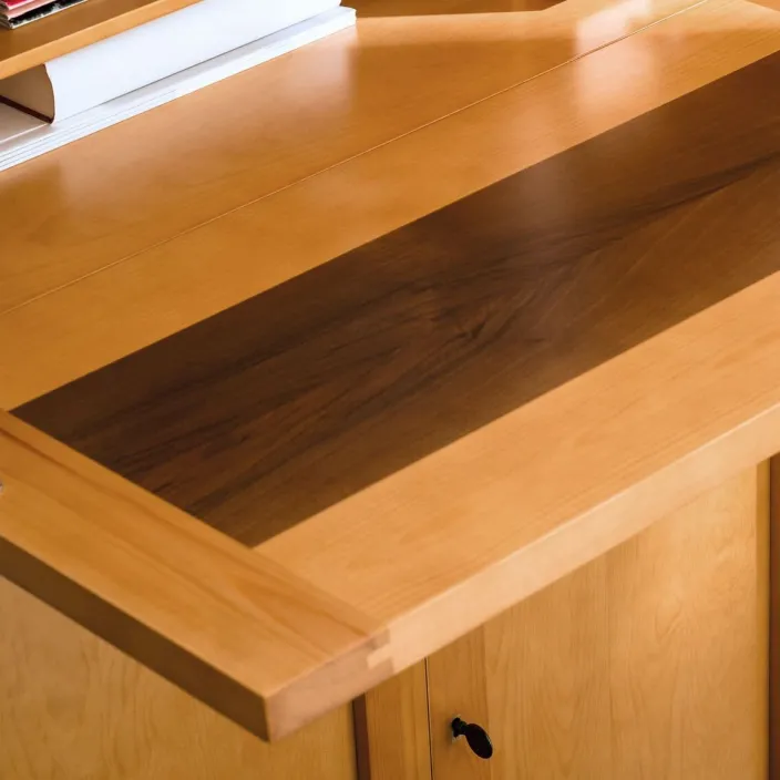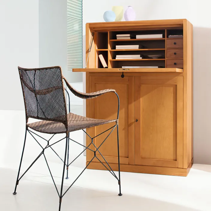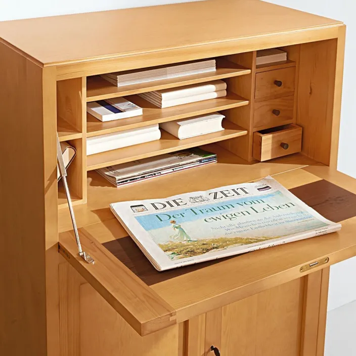 Mit natürlicher Eleganz und authentischer Ausstrahlung integriert sich der Sekretär mühelos in jede Umgebung. An seiner aufklappbaren Arbeitsfläche lässt sich wunderbar verweilen, und mit der durchdachten Innenaufteilung ist der Sekretär ein diskreter, ordnungsliebender Vertrauter.