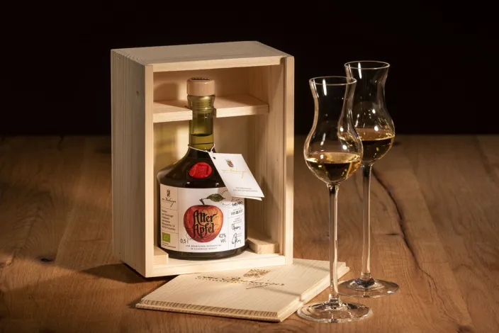Limitierter Edelbrand aus der Freiherr von Poschinger Edelbrandmanufaktur. Exklusiv für das Jubiläum der ZEIT haben wir in Kooperation mit der Freiherr von Poschinger Edelbrandmanufaktur den Edelbrand »Alter Apfel« kreiert. Der exklusive Sonderbrand ist auf 100 Flaschen limitiert und basiert auf der Apfelsorte »Böhmischer Brünnerling« – eine alte, fast vergessene und ausgestorbene Apfelsorte. Die Apfelsorte ist optimal an das raue Klima der böhmisch-bayerischen Mittelgebirge angepasst und nur noch in wenigen Exemplaren im Gutsobstgarten zu Oberfrauenau vorhanden. Der Brand wurde mehrere Monate in einem speziellen Fass gelagert und ausgebaut.