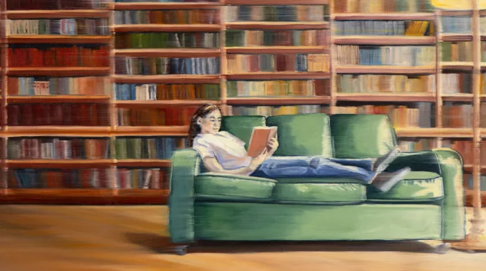 In ihrer Interpretation des klassischen Lesemotivs schafft Struck eine Szene, die die ideale Atmosphäre für Bücherliebhaber einfängt: eine ruhige Bibliothek, ein gemütliches Sofa und die Stille, die nur von den Seiten eines Buches erfüllt wird. Dieses limitierte Kunstwerk lädt zum Verweilen ein und bringt die Schönheit des Lesens in jeden Raum.