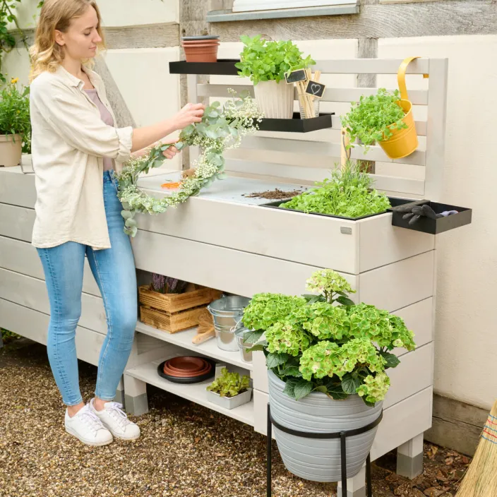 Cleveres Design für maximale Vielseitigkeit: Die Beetbar punktet nicht nur mit ihrem attraktiven Äußeren, sondern auch mit durchdachter Funktionalität. Der integrierte Schrank bietet sowohl offenen als auch geschlossenen Stauraum – perfekt, um Gartengeräte oder Utensilien zu verstauen und dabei stets griffbereit zu haben.