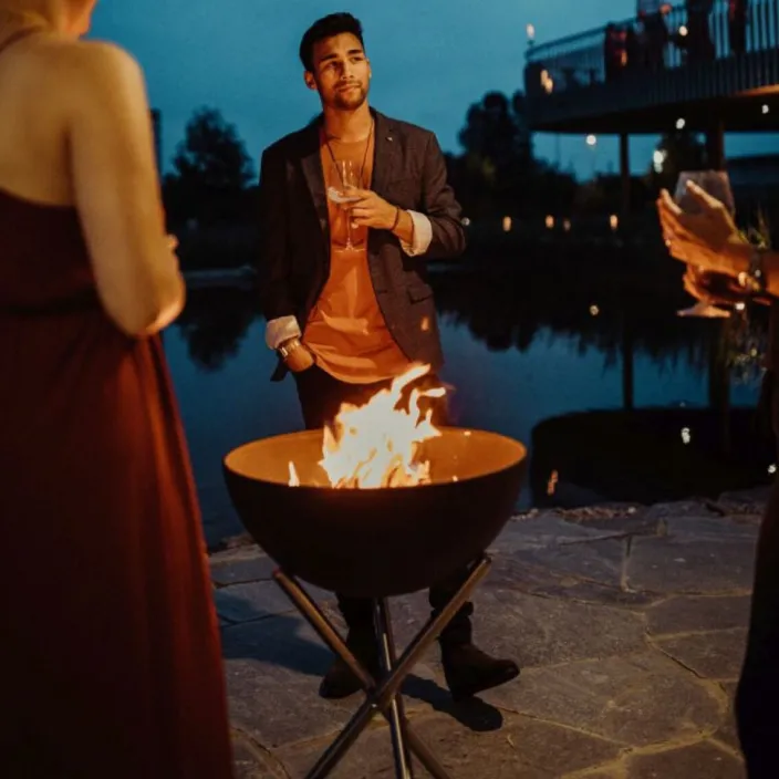 Es ist Zeit für lange Nächte und gemütliche Stunden! Das Dreibein bringt die Feuerschale »BOWL« in eine erhöhte Position und somit auf eine angenehme Grillarbeitshöhe. Das Dreibein ist dank eines patentierten Verbindungsstücks faltbar und sorgt trotzdem für einen sicheren Stand. Die Halbkugel kann beim Einsatz als erhöhte Feuerschale frei geschwenkt werden.