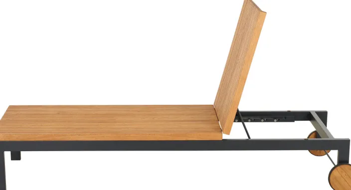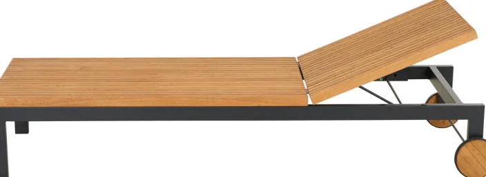 Der Unterbau aus pulverbeschichtetem Aluminium ist wetterfest, rostfrei und gleichzeitig sehr leicht. Für langanhaltende Qualität und eine einfache Handhabung. Das zu 100% FSC®-zertifizierte Robinienholz ist besonders hart, robust, widerstandsfähig und besticht mit seiner schönen Maserung, die der Liege einen ganz eigenen Charakter verleiht.