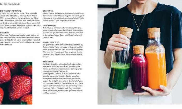 - Grundzutaten mit Wumms: Klassische Gemüsebrühe mit Einlage / Ingwer-Knoblauchpaste / Herzhafter Buchweizen-Crunch / Granola-Butter / Schnelle Pinke Pickles