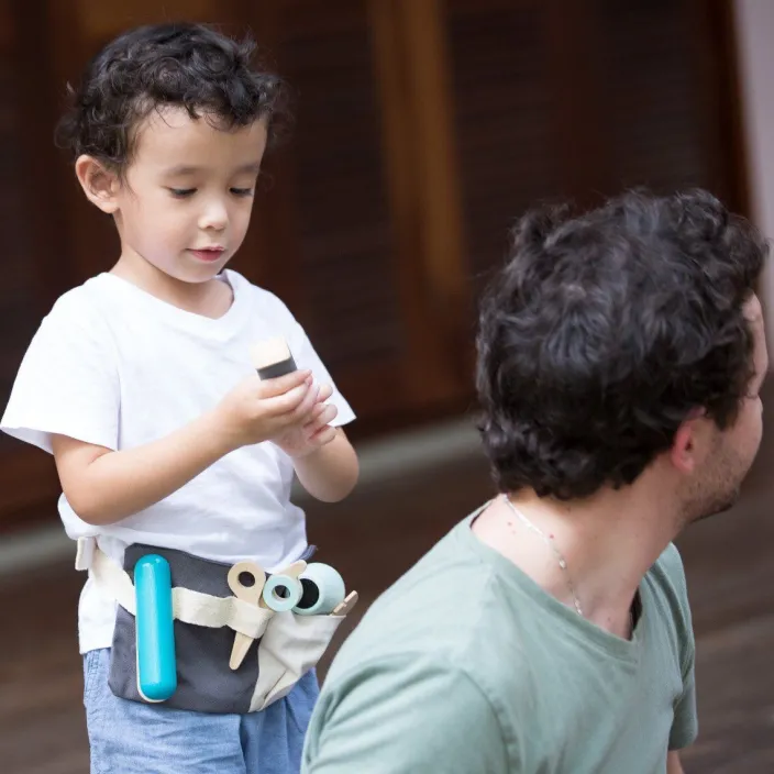 Bob, Dauerwelle oder Kurzhaarschnitt – frisurentechnisch ist alles möglich mit dem umfangreichen und liebevoll designten Friseur-Set von Plan Toys. Mit Föhn, Kamm, Schere, Glätteisen und Rasieren können Ihre Kleinen in kreativen Rollenspielen spielerisch dem Friseurberuf annähern. Durch die praktische größenverstellbare Gürteltasche aus Baumwolle haben sie alle Werkzeuge dafür immer griffbereit. Durch die hochwertig verarbeiteten Utensilien aus Holz werden nicht nur abgeschnittene Strähnen vermieden, sondern auch noch Hemmungen vor dem nächsten Friseurbesuch des Kindes abgebaut.