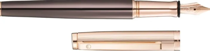 Der Füllfederhalter der Serie »Tuscany« aus der Manufaktur Waldmann ist aus massivem Sterling-Silber gefertigt und mit mehrschichtigem schwarzem Brilliantlack verziert. Die Kappe wird geziert von einem edlen Linien-Design. Mit 24K Roségold plattierte Zierteile machen den Stift zu etwas ganz Besonderem und verleihen ihm eine einzigartige Eleganz. Hochwertig verarbeitet, mit einer Edelstahlfeder mit Iridiumpunkt versehen, sorgt der Füllfederhalter »Tuscany« für ein besonders angenehmes Schreibgefühl.