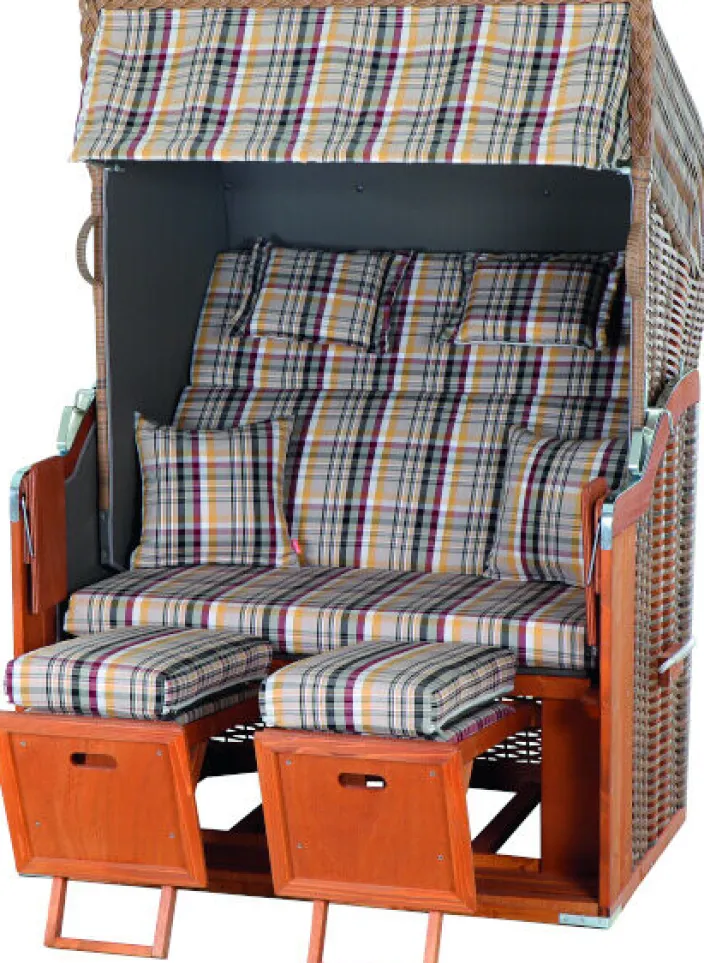Der Oberkorb ist variable verstellbar und durch eine extra starke Polsterung sehr gemütlich. Das Holz ist imprägniert und der Kunststoff wurde rundum von Hand geflochten. Dabei werden nur Stoffe verwendet, welche eine extrem hohe Qualität haben, sodass ihnen auch die UV-Strahlung kaum etwas anhaben kann. Der Oberkorb wurde aus einem Stück geflochten, dadurch gewinnt er an zusätzlicher Stabilität. Genießen Sie Ihren Strandkorb in Ihrer grünen Oase! Jetzt heißt es nur noch: Füße hoch und Entspannen, denn der Gartenstrandkorb wird bereits fertig montiert zu ihnen geliefert!