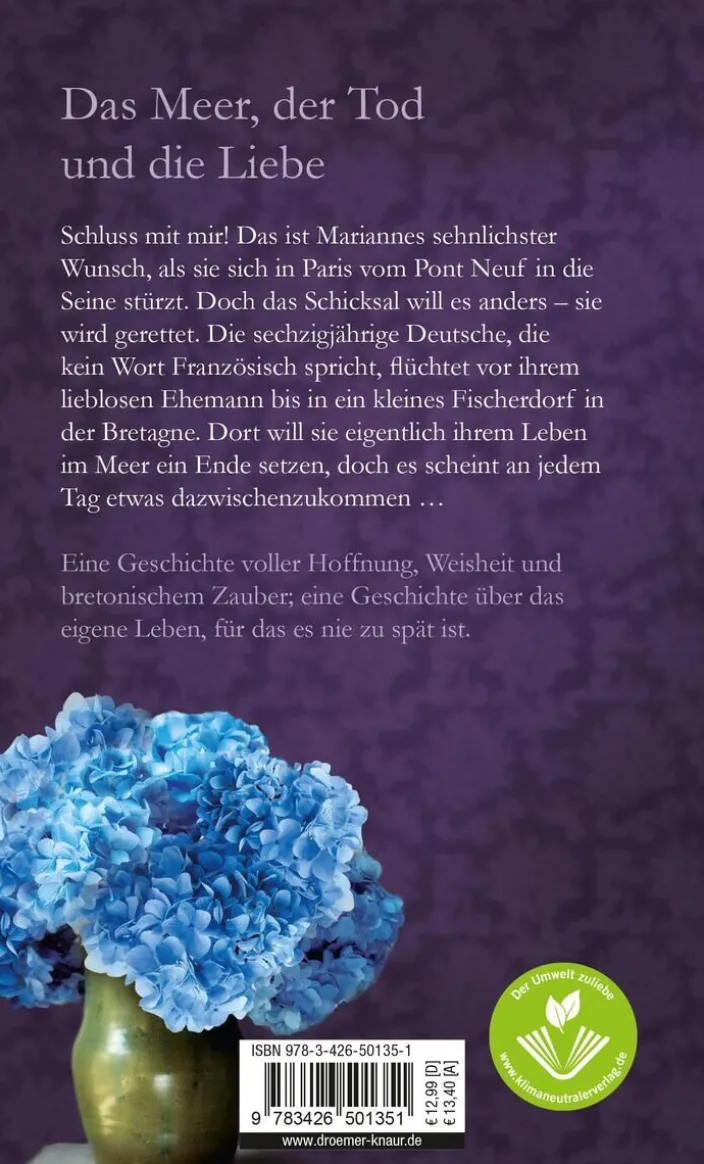 Schluss mit mir! Das ist Mariannes sehnlichster Wunsch, als sie sich in Paris in die Seine stürzt. Doch das Schicksal will es anders – sie wird gerettet. Die 60-jährige Deutsche, die kein Wort Französisch spricht, flüchtet vor ihrem lieblosen Mann bis in die Bretagne. Dort begegnet sie dem Maler Yann, und es gelingt ihr, mit neu erwachendem Mut und überraschender Zähigkeit ein neues Leben zu wagen. Ihr eigenes.