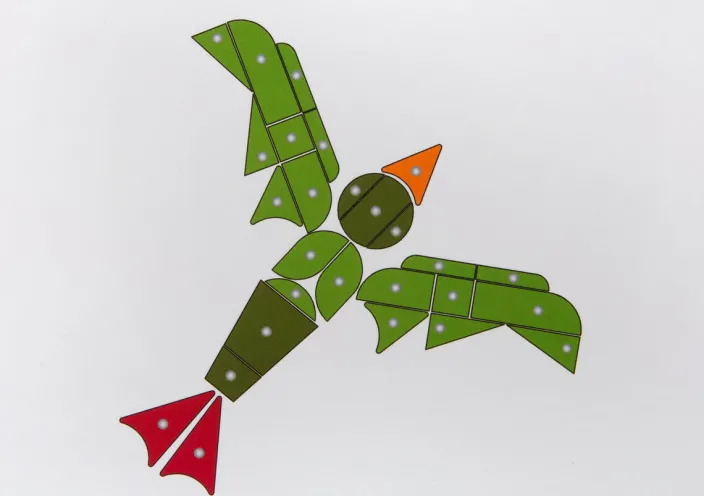 Der Fantasie sind hier keine Grenzen gesetzt. Ob Roboter, Zug oder Rakete hier ist alles möglich. Wer noch Inspiration sucht, schnappt sich die sechs Bildvorschläge und los geht’s! Das Hämmerchenspiel mit farbenfrohen Puzzleteilen aus Holz fördert feinmotorische Fähigkeiten. Dank vorgefertigter Löcher in den Puzzleteilen lassen sich die Nägel ganz einfach mit dem Hammer in die Korkplatte schlagen. Beim Gestalten sind Fantasie und Kreativität keine Grenzen gesetzt.