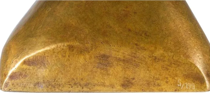 Die Skulptur aus feiner Bronze ist im Wachsausschmelzverfahren gegossen und von Hand ziseliert, poliert und patiniert worden.
