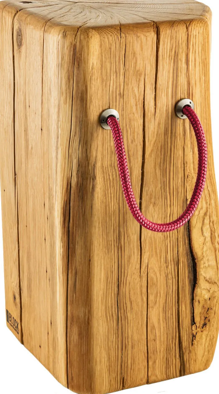 Jeder Hocker aus der 2016 gegründeten Blockmanufaktur wird von Hand in Deutschland hergestellt und ist dazu exklusiv für die Zeit mit einem praktischen Tragegriff in Rot ausgestattet. Der Griff ist zudem das Markenzeichen der Blockmanufaktur-Möbel. Es zaubert jedem Beistelltisch ein Lächeln ins Gesicht.